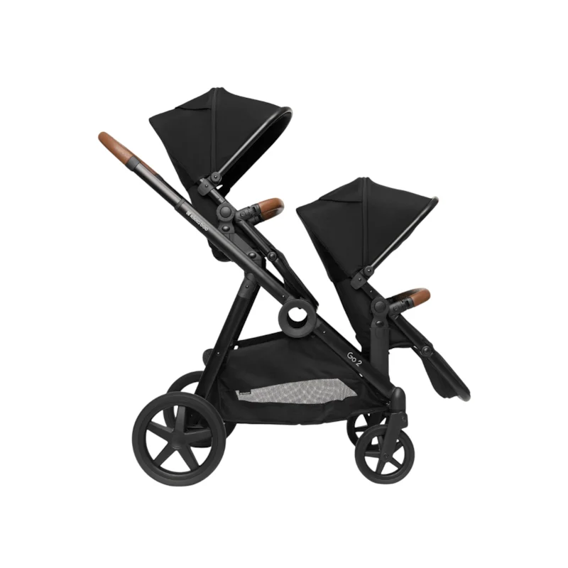 O Carrinho Go2 da Kikkaboo é para quem tem um ou dois bebês. Usável com um ou dois assentos, suporta até 22 kg conforme normas europeias. Possibilita combinar assentos com moisés e bebê conforto (vendidos separadamente), totalizando mais de 11 combinações. Cada assento tem 3 posições de recline.